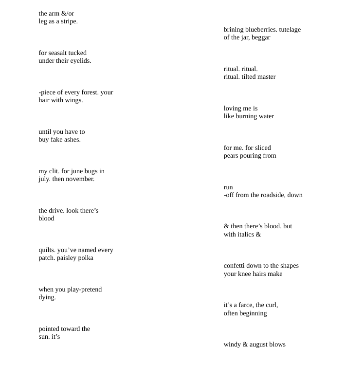 Liam’s previous pieces: nightmares of my father dying (Issue 48), pareidolia in the form of a lamprey (Issue 74), and love every queer because we’re demons: love every queer because we’re gods (Issue 81)